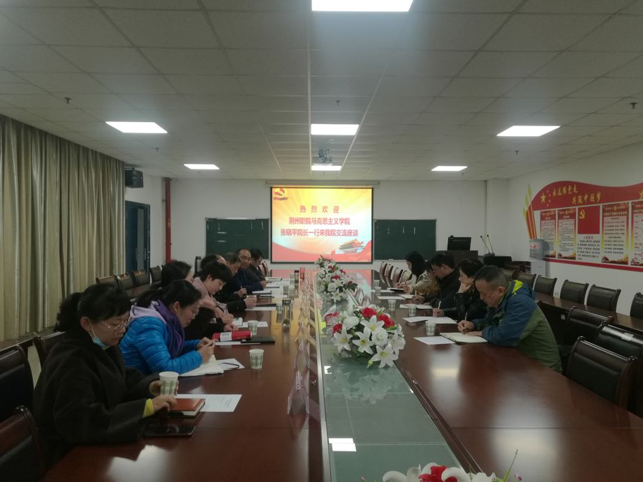 3月17日下午,荆州职业技术学院马克思主义学院院长张晓平带队来我院进行交流,院全体班子成员及部分教师代表参加了座谈会。