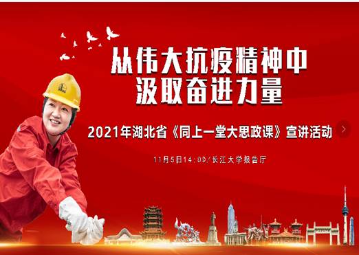 (通讯员李晓燕刘志起)11月5日,由中共湖北省委宣传部、湖北省教育厅、共青团湖北省委员会、湖北广播电视台,长江大学主办,长江大学马克思主义学院、武汉校区管委会和石油工程学院承办的“从伟大抗疫精神中汲取奋进力量”为主题的《同上一堂大思政课》——湖北省思政大课宣讲活动在长江大学武汉校区学术报告厅开讲。2020年抗击新冠肺炎的斗争是我省最生动的思政课教材,为深入贯彻落实习近平总书记关于“讲好抗疫这堂大思政课”的重要讲话精神,充分发挥思政课“立德树人”的关键作用,特举办此项宣讲活动。