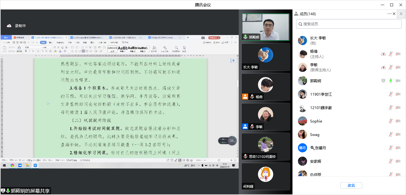 (通讯员 齐晓杭)6月19日上午9时,马克思主义学院2022年第二场公职考试培训于线上举行,长江大学优秀校友、应城市委常委、统战部长、组织部长郭殿明受邀作为主讲嘉宾。学院党委书记刘小燕主持会议,学工办主任张云雾、辅导员李敏和150多名学生参加会议。