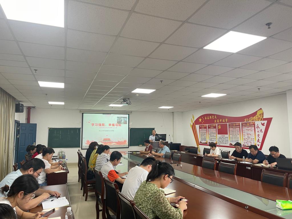 6月21日下午,马克思主义学院在文科楼1104室召开本月教职工大会,全院教师以线上线下相结合的方式参会。会议由院长姜学勤主持。