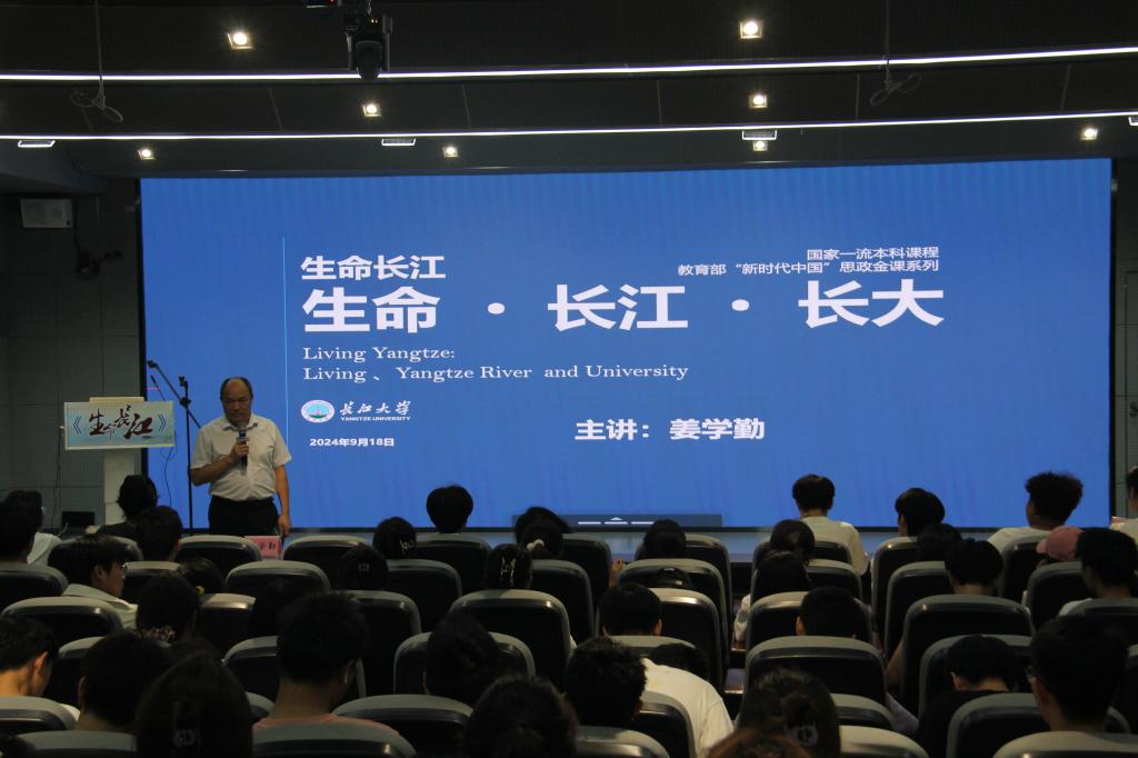 (学生记者 黄怡婧)认识世界变局,担当复兴大任。9月18日晚,大型思政公选课《生命长江》在16教A313开讲。马克思主义学院院长姜学勤担任主讲人。