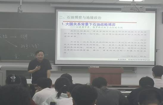 (通讯员 刘雅 陈曦)10月15日晚7时整,武汉校区A教103教室早已座无虚席,学生们齐聚一堂,充满期待地迎接本学期《生命长江·大国能源》第三讲。武汉工程大学马克思主义学院舒先林教授走上讲台,激情开讲第三讲:更好端牢能源的饭碗——兼论中国石油安全的国内外环境。