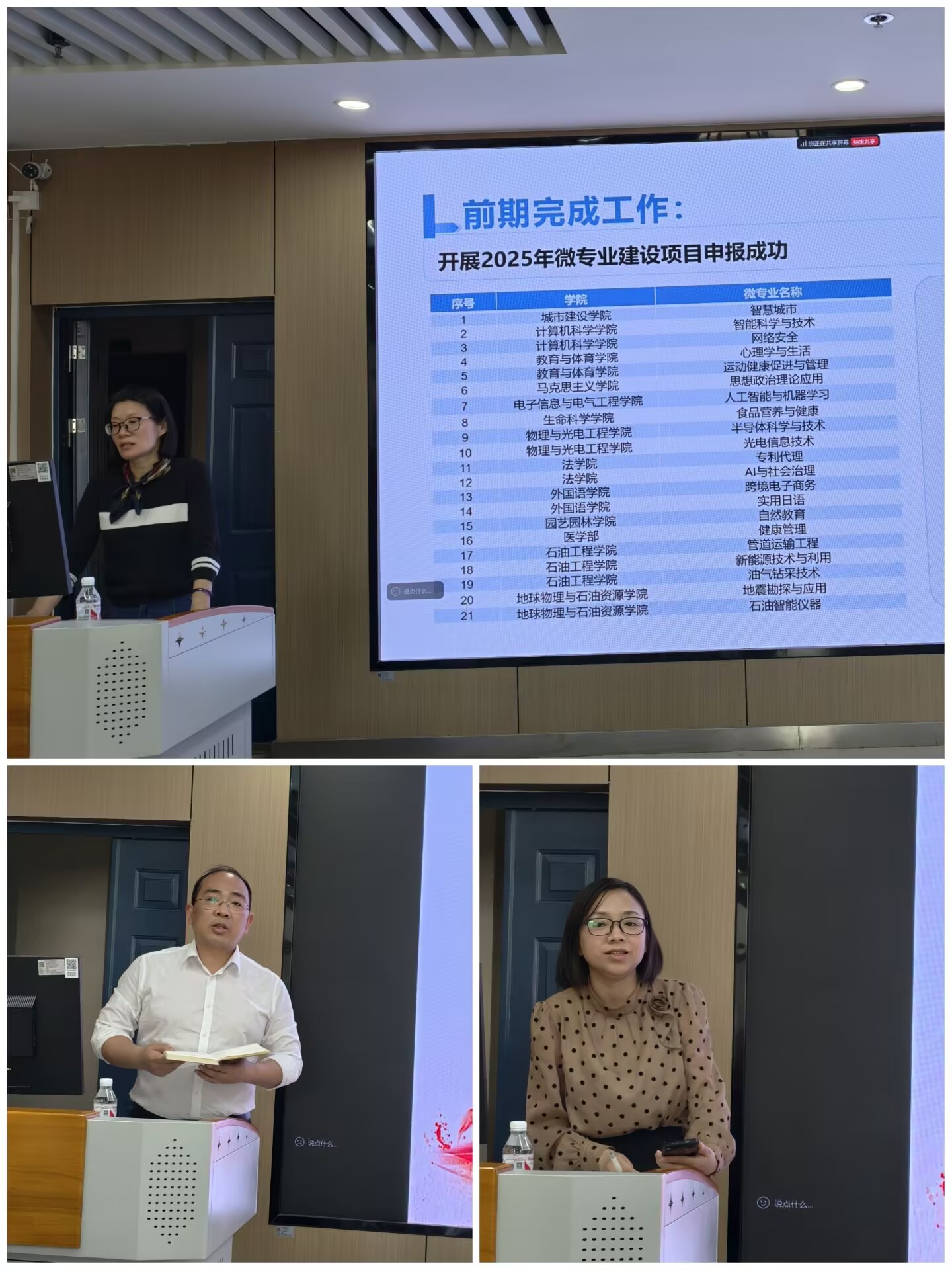 张莉副院长就近期微专业建设项目申报、本科生毕业论文中期检查、教学成果奖申报、期中教学检查等教学相关工作进行了总结和部署;涂江波副院长通报了我院硕士研究生招生及毕业论文答辩、科研项目申报等工作进展;汤慧珍讲解了学院全员就业育人工作实施方案,传达学习了学校关于进一步加强学生安全教育管理的工作方案。