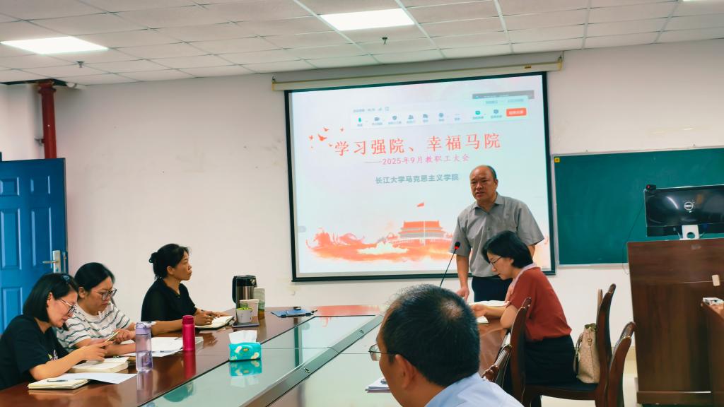 9月7日下午,马克思主义学院2025年秋季新学期教职工大会在文科楼1008室举行。全体教职工参加大会,会议由院长姜学勤主持。