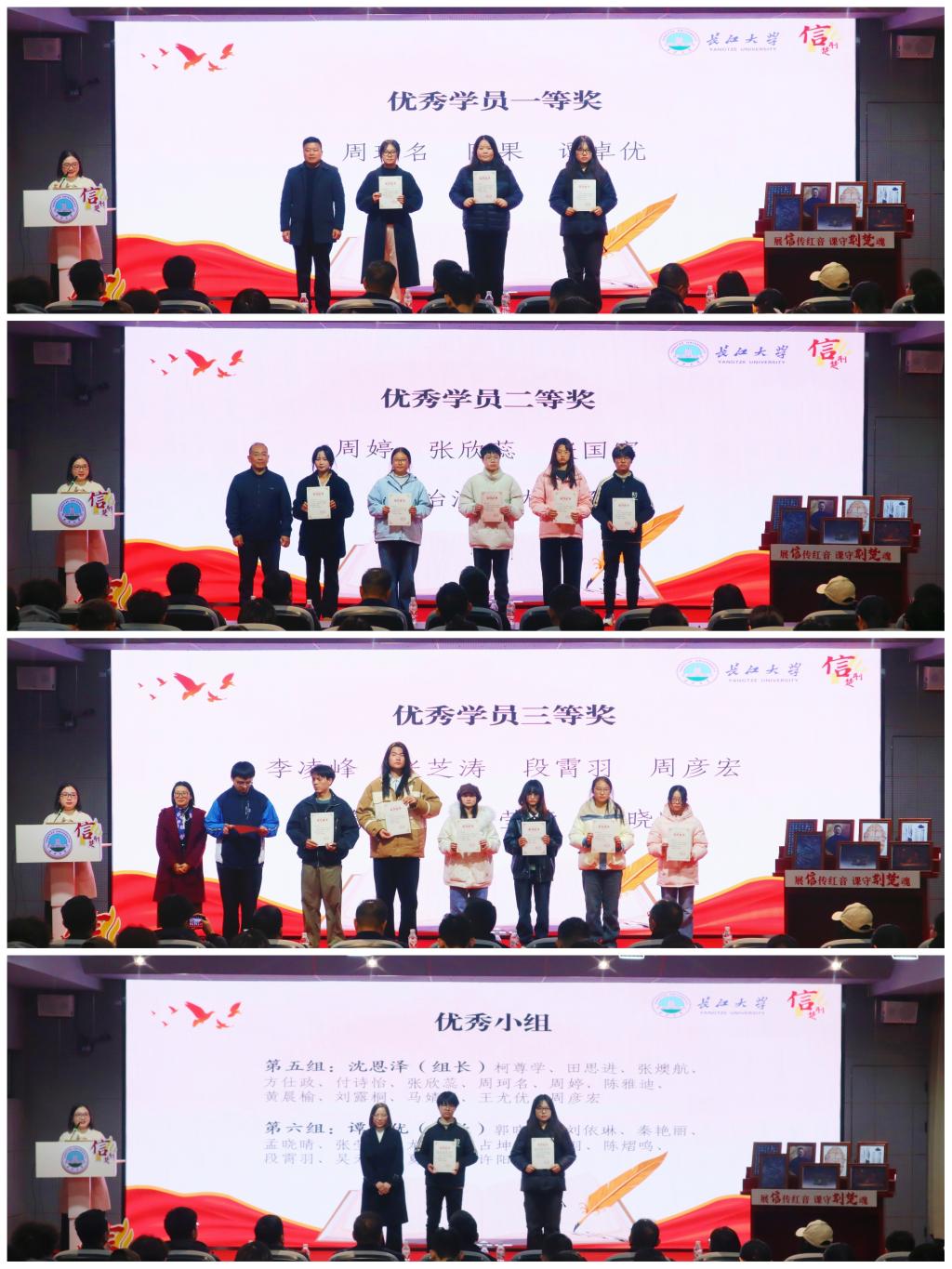 课后举行了《信·荆楚》第三季结课仪式暨颁奖典礼,对15名学员及2个优秀小组进行了表彰。