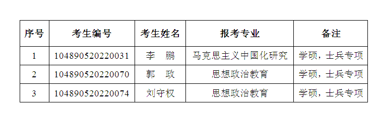 马克思主义学院2020年研究生招生大学生退役士兵专项计划 第一志愿考生复试名单公示