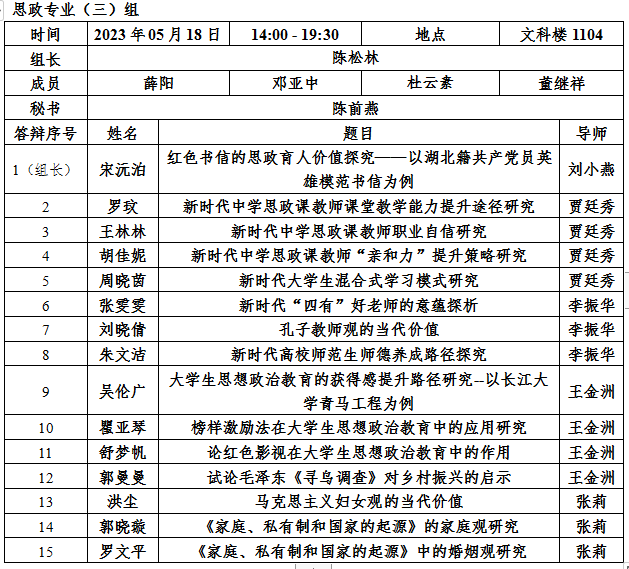 2. 每小组安排半天答辩,学生人数应在15名以内;安排全天答辩,学生人数应在30名以内。