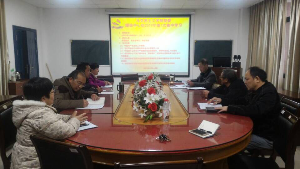 2019年1月8日,马克思主义学院党委理论学习中心组在文科楼1125室组织了2019年首次集中学习。党委委员、各支部书记、科级以上干部参加了理论中心组学习,会议由党总支书记吴智勇主持。