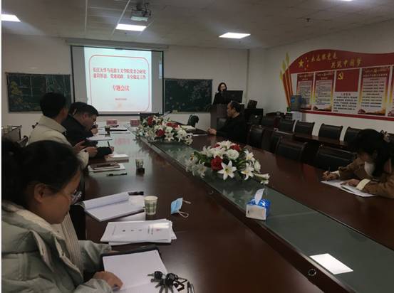 3月24日下午,马克思主义学院在文科楼1104室召开党委会,专题研究意识形态工作。会议由院党委书记刘小燕主持,学院党委委员、党支部书记、全体行政人员共同参会。
