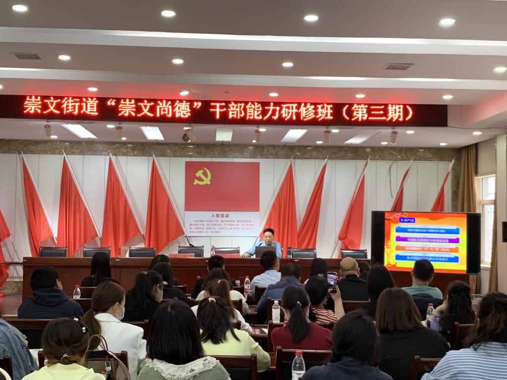(通讯员 谢蕾)5月25日,沙市区崇文街道“崇文尚德”干部能力提升研修班第三期在崇文街道办事处开讲,授课老师为马克思主义学院尹业香教授,沙市区崇文街道50余人参加了此次培训。