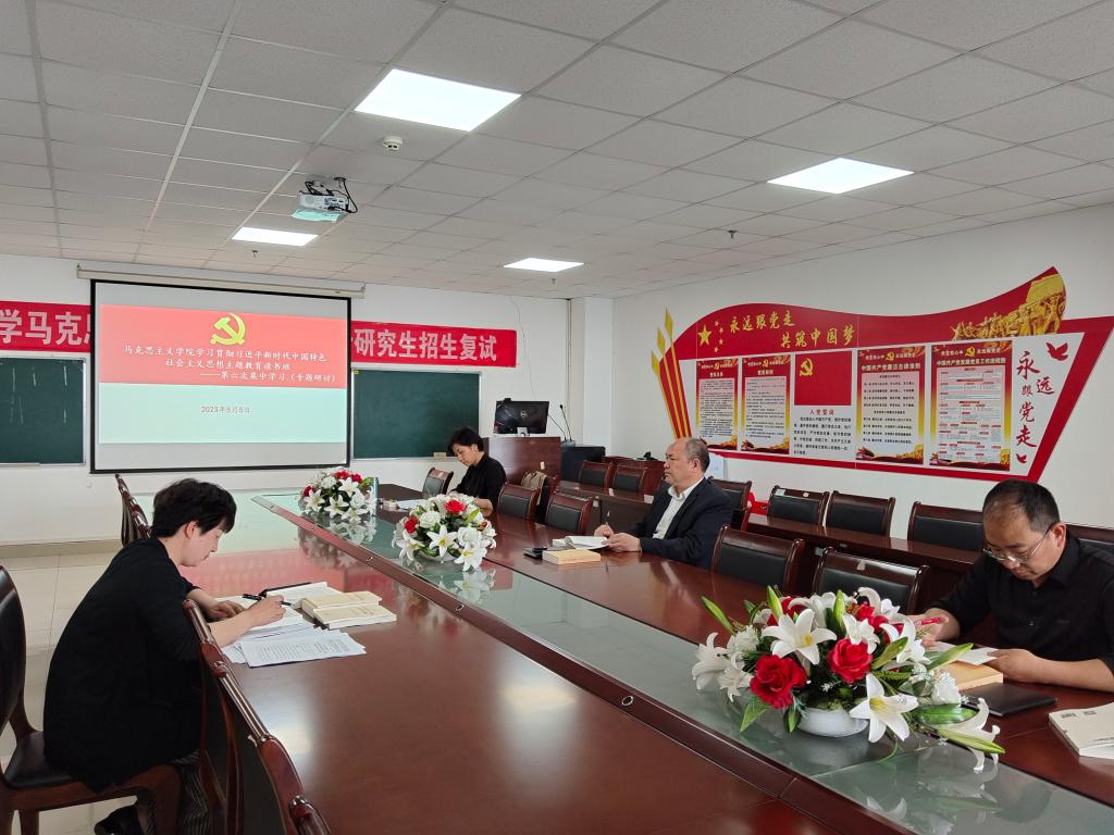 5月5日晚,马克思主义学院学习贯彻习近平新时代中国特色社会主义思想主题教育读书班在文科楼1104室开展第六次集体学习。深入学习了《习近平著作选读》第一卷“加强和改进党的群团工作”等12个篇目内容,逐字逐句研读了《习近平新时代中国特色社会主义思想专题摘编》中有关“实施科教兴国战略,强化现代化人才支撑”的论述。院领导姜学勤、刘小燕等聚焦“三位一体”推进高水平大学建设作了交流发言。