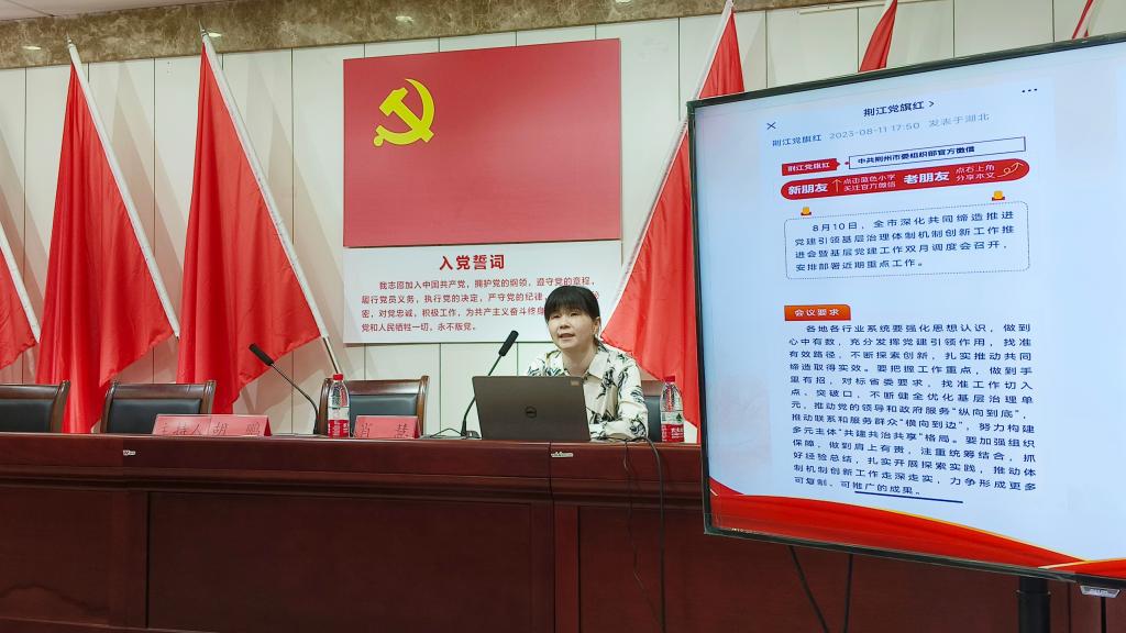 会议伊始,崇文街道党工委书记胡鹏分别对两位老师的到来表示热烈的欢迎,并进行了详细的介绍。王贤锋老师多角度、深层次地讲授了“优势视角下的社区工作实务”,阐述了社区服务中优势助人原则及实务要领。肖慧副教授以“深化共同缔造,打造党建引领基层治理创新‘荆州样板’”为题进行讲授,她从逻辑理路、价值意蕴、湖北实践、荆州探索四个方面探寻基层治理创新的荆州之路。
