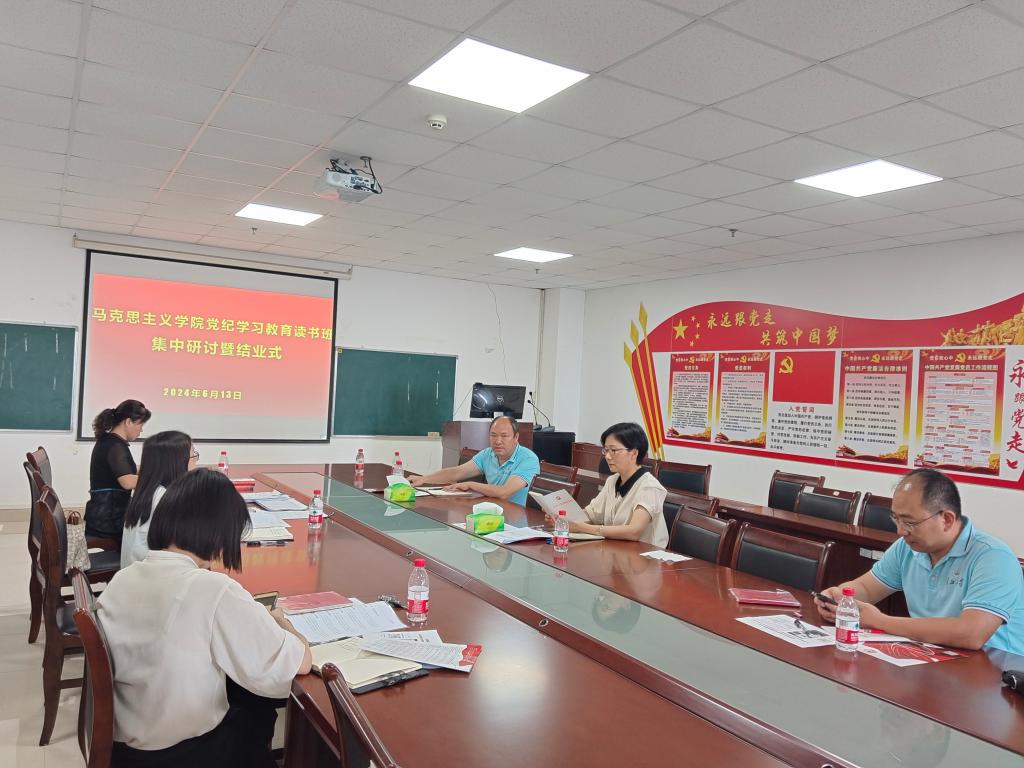 6月13日上午,马克思主义学院在文科楼1104室举行党纪学习教育读书班总结交流会,专题学习《中国共产党纪律处分条例》(以下简称《条例》)附则部分内容,并开展学习交流。学院党委理论学习中心组成员及党委委员参加学习会,会议由院党委书记刘小燕主持。