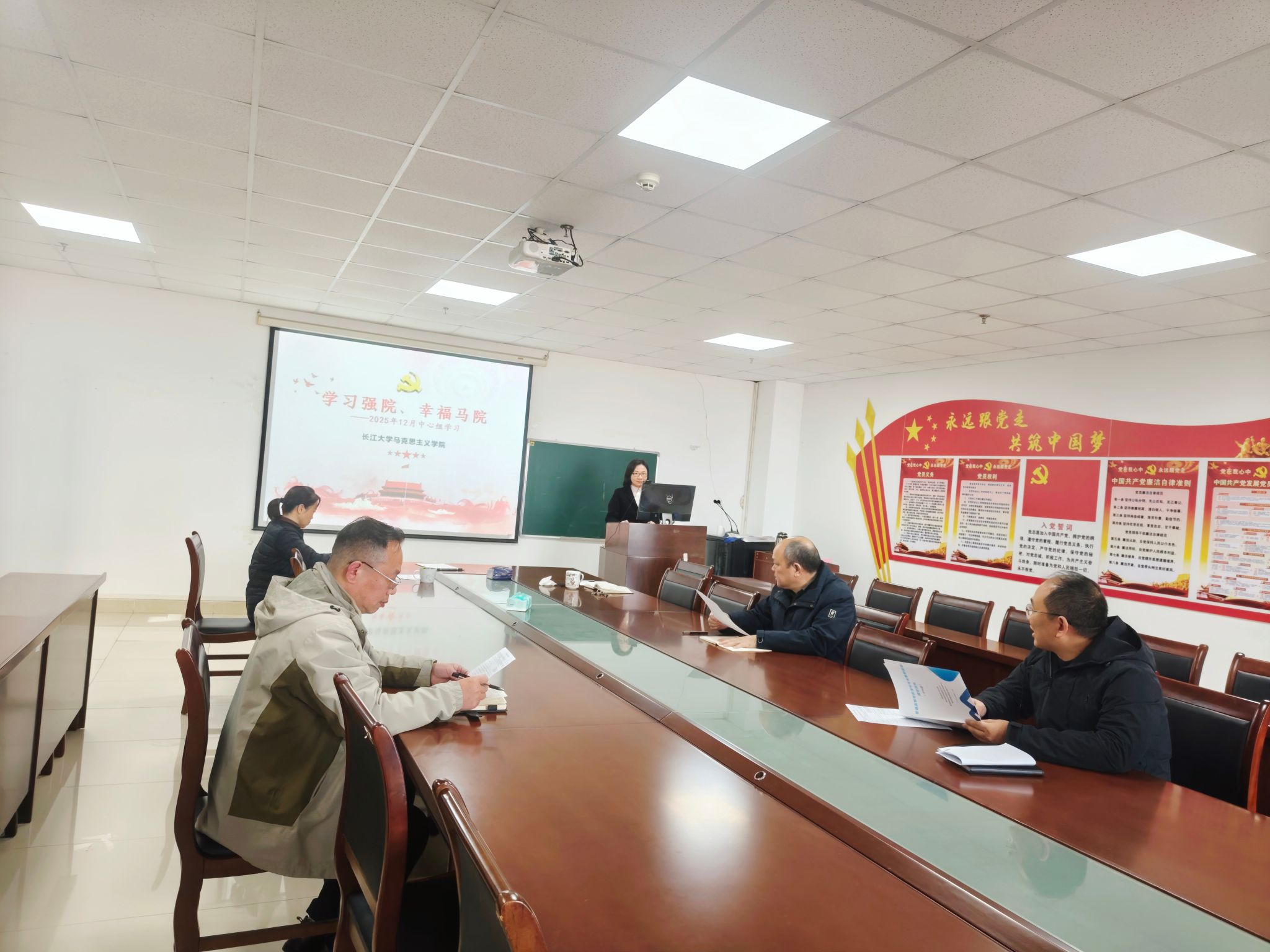 12月18日下午,马克思主义学院在文科楼1104室举行党委理论学习中心组2025年第十二次集体学习会。及时学习习近平总书记最新重要讲话精神、省委近期相关会议精神。会议由院党委书记刘小燕主持。
