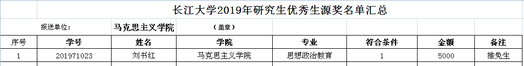 根据《关于开展2019 级研究生优秀生源奖学金评选工作的通知》的要求,我院成立研究生优秀生源奖学金评选小组,通过学生申请、材料审核,现确定推荐名单公示如下,公示时间:11月6日-8日,若有异议,请于公示期内向院办反映:0716-8060733.