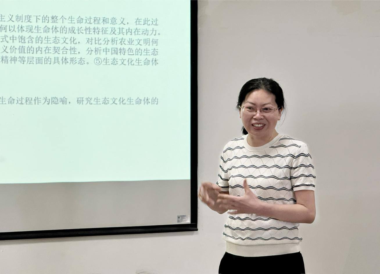 (通讯员 姚雨田)为深化中国特色生态文化理论研究与学术交流,探索生态文化发展路径,马克思主义学院求实导师学术沙龙第十三期于4月25日下午在文科楼1104室举办。马克思主义理论学科副教授、硕士生导师黄晓云带来了一场题为“中国特色的生态文化生命体研究”的精彩讲座。肖芬蓉、饶玲以及部分研一同学参加。