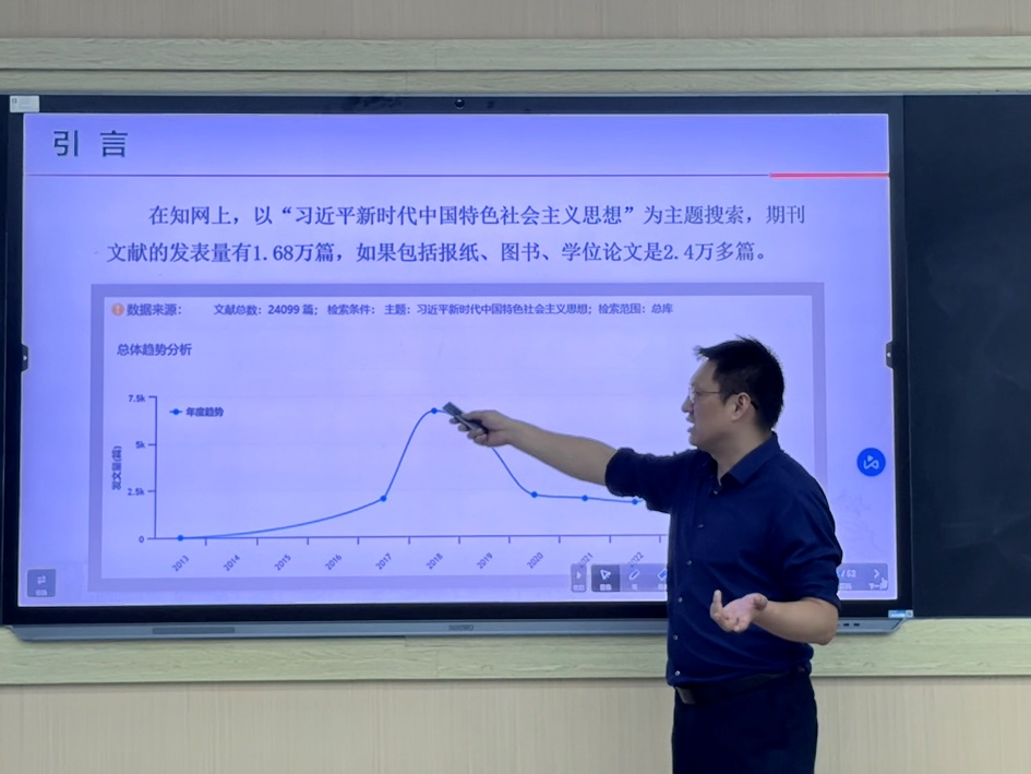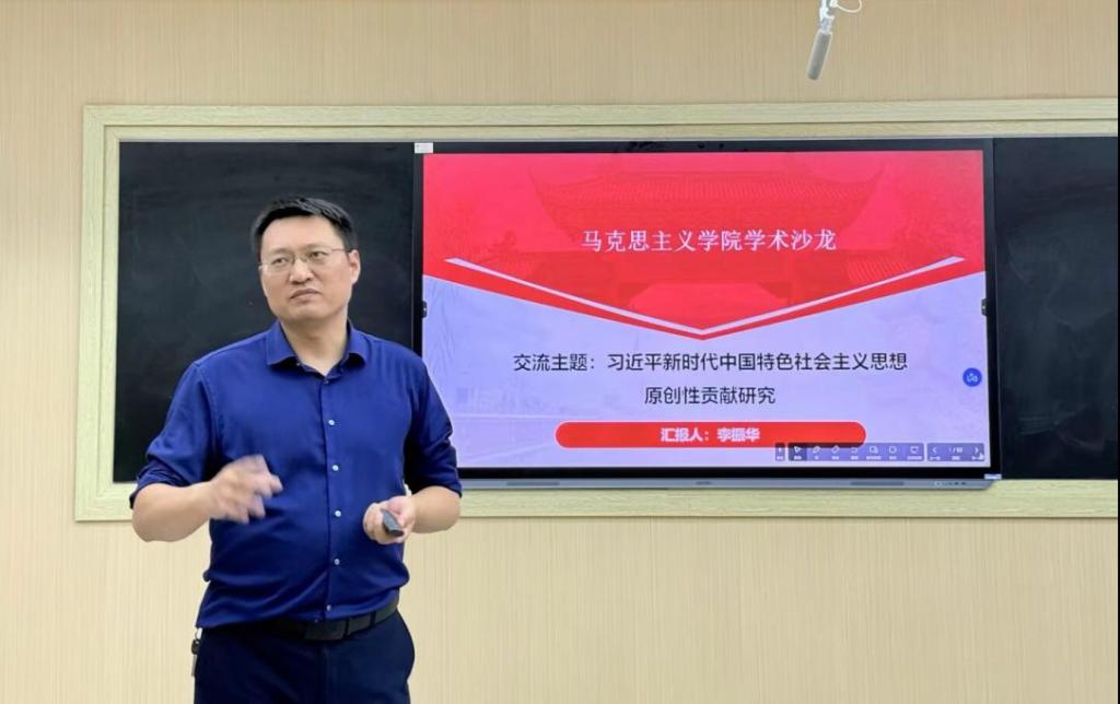 (通讯员 汤羽彤/文 刘诗雨/摄)9月30日,马克思主义学院求实导师学术沙龙第一期在东校区16教107教室成功举行。李振华副教授以“习近平新时代中国特色社会主义思想原创性贡献研究”为题作报告,学院60余名研究生参加学术沙龙活动。