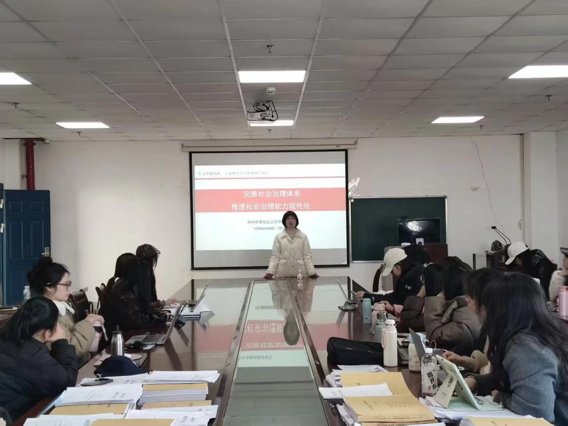 (通讯员 何知知/文 汤羽彤/摄)2025年11月21日,长江大学求实导师学术沙龙系列讲座在文科大楼1104教室成功举办。本次讲座以“完善社会治理体系,推进社会治理能力现代化”为主题,由马克思主义学院肖慧教授主讲,学院部分教师及研究生参与,共同探讨新时代社会治理的理论与实践路径。