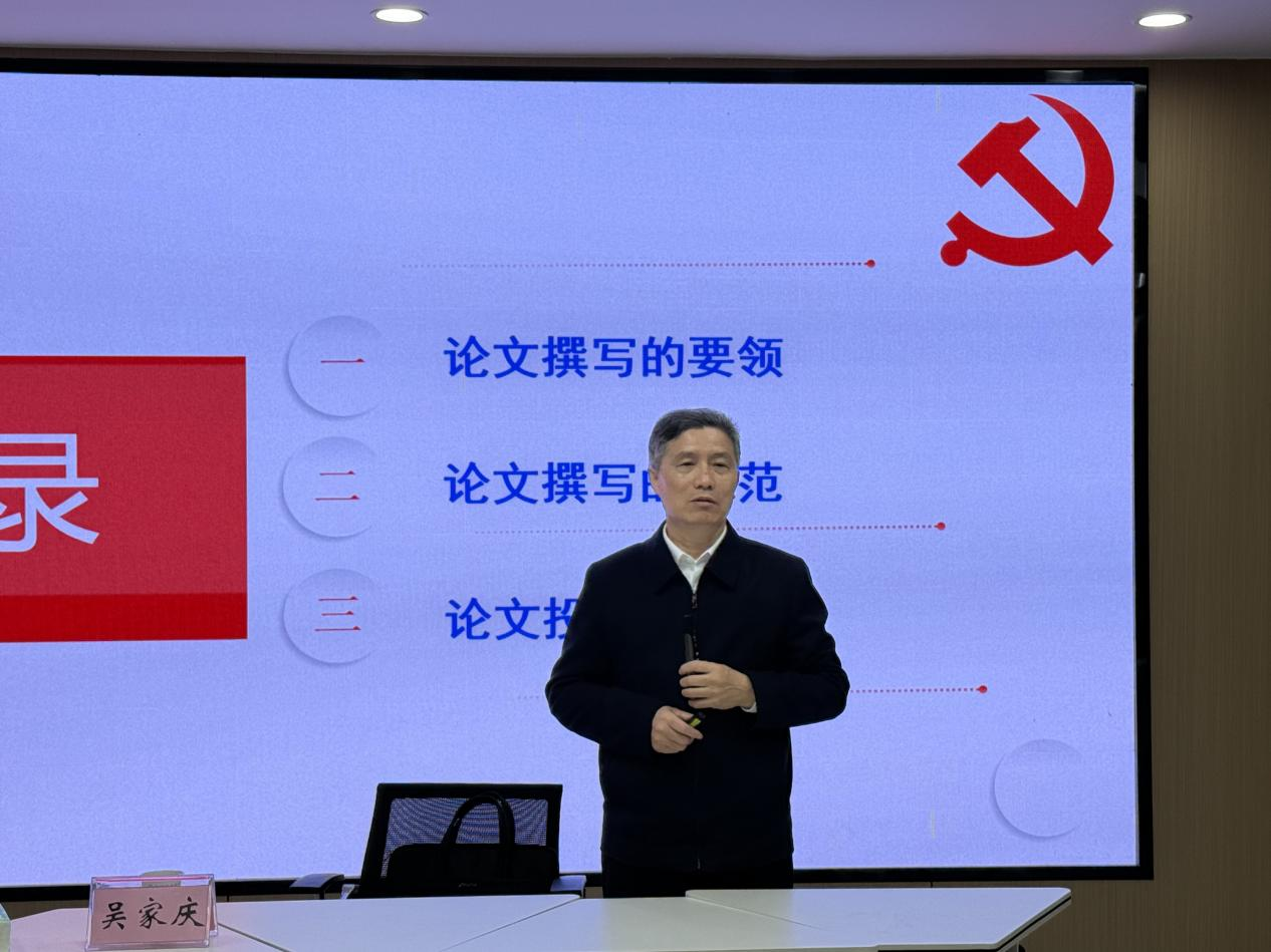 (通讯员 刘诗雨 汤羽彤)论文撰写明规范,笔墨铸魂育真才。12月1日晚,马克思主义学院于文科大楼1008室举办“思政教育五十年”系列学术讲座2025年第十二讲。本次讲座特邀湘潭大学马克思主义学院教授、博士生导师吴家庆主讲,他以《学术论文撰写的要领与规范》为题,结合自身数十年学术研究与论文撰写的丰富经验,为师生带来一场兼具指导性与启发性的学术盛宴。讲座由学院副院长涂江波主持,30余名师生参与聆听。