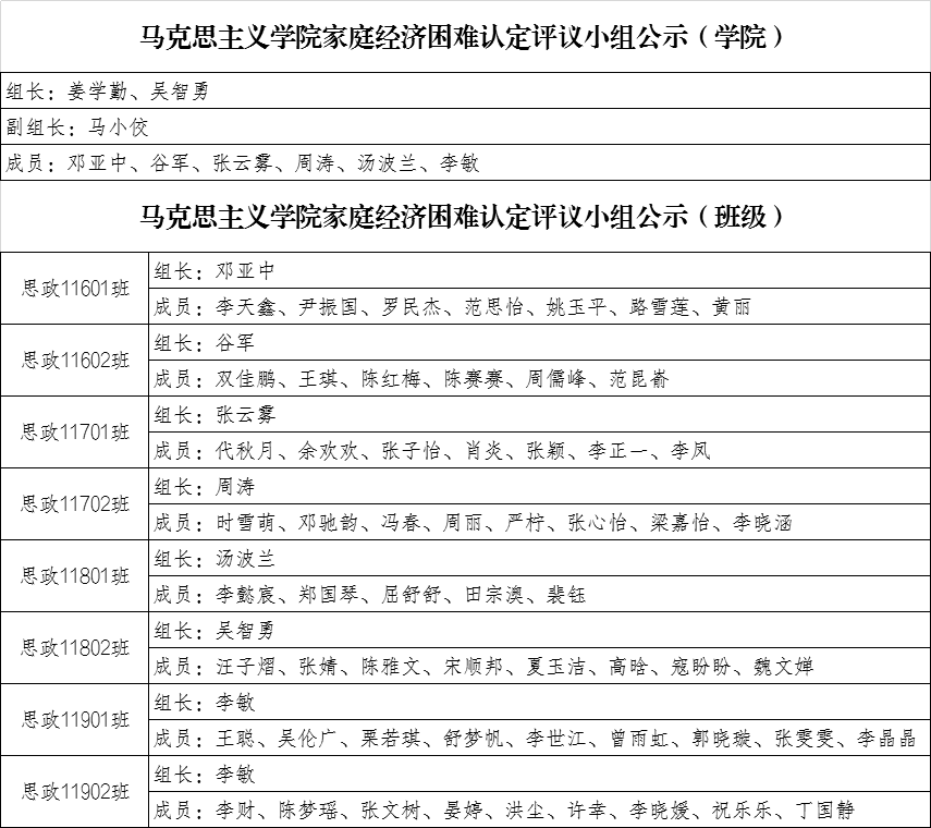 【信息公示】马克思主义学院家庭经济困难认定评议小组名单