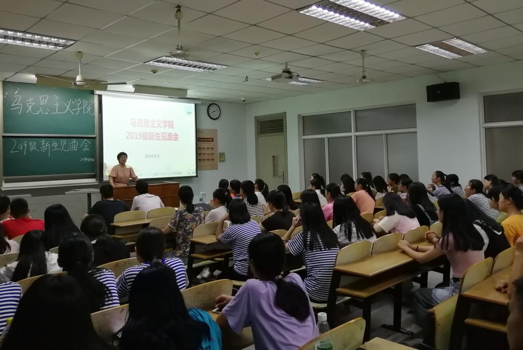 9月5日晚,马克思主义学院2019级本科新生见面会在13教C120教室顺利召开。学院党委副书记马小佼、学工办主任张云雾、辅导员李敏、兼职辅导员董思遥及全体2019级本科新生参加会议。