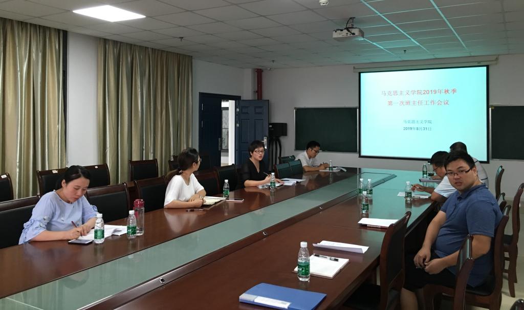 8月31日下午5:00,马克思主义学院2019年下学期第一次班主任工作例会在文科大楼1104会议室召开,学院党委书记吴智勇、党委副书记马小佼、全体班主任和全体辅导员参加会议。