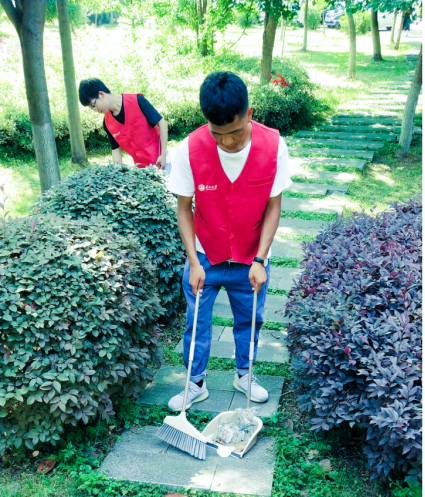 马院志愿者第一小分队(莫保华、高慧、巴桑扎西)伴着阳光与热情,带着劳动工具,穿着统一的红色公益小马甲,对文科楼A座以东区域展开了认真细致的清扫活动。经过志愿者的辛勤劳动,长大校园变得更加“靓丽”。