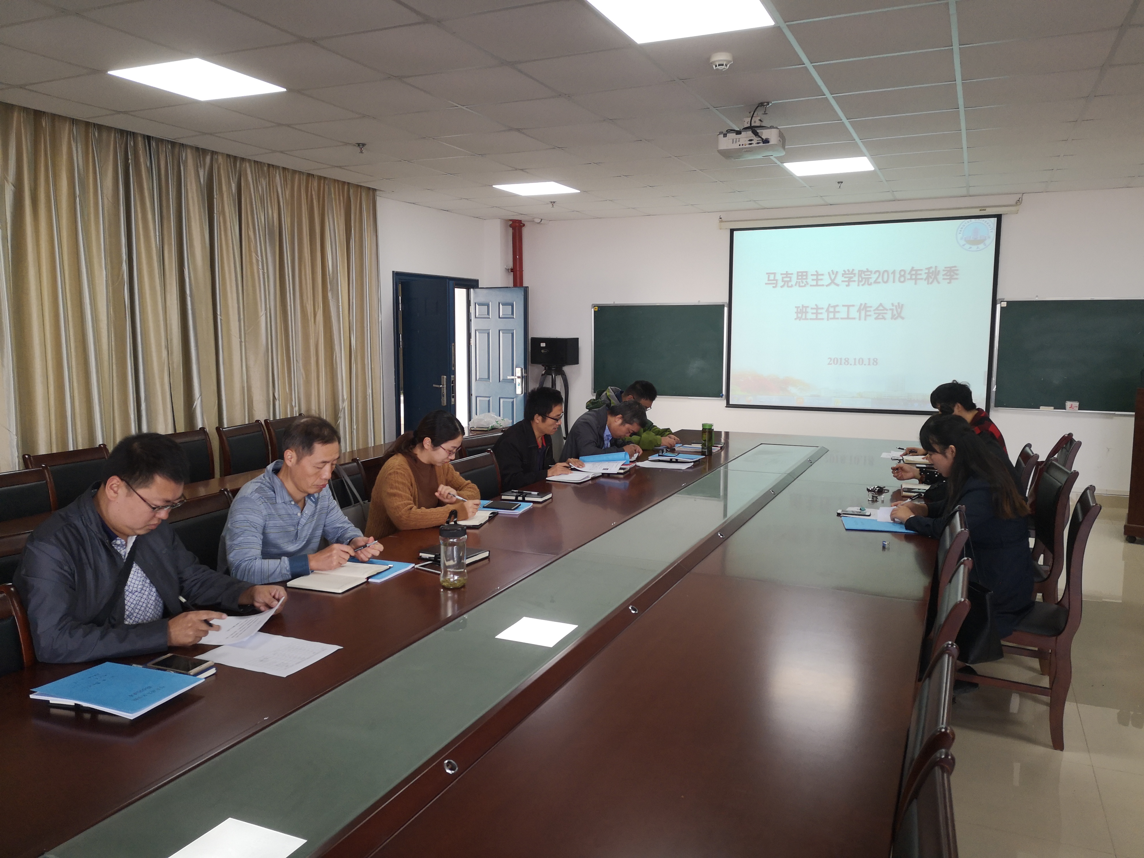 马克思主义学院于10月18日下午2点在文科楼1104会议室召开本学期第一次班主任工作会议。参加本次班主任会议的有马克思主义学院党委书记吴智勇老师、马克思主义学院党委副书记马小佼老师以及马院全体班主任。会议由马克思主义学院党委副书记马小佼老师主持。