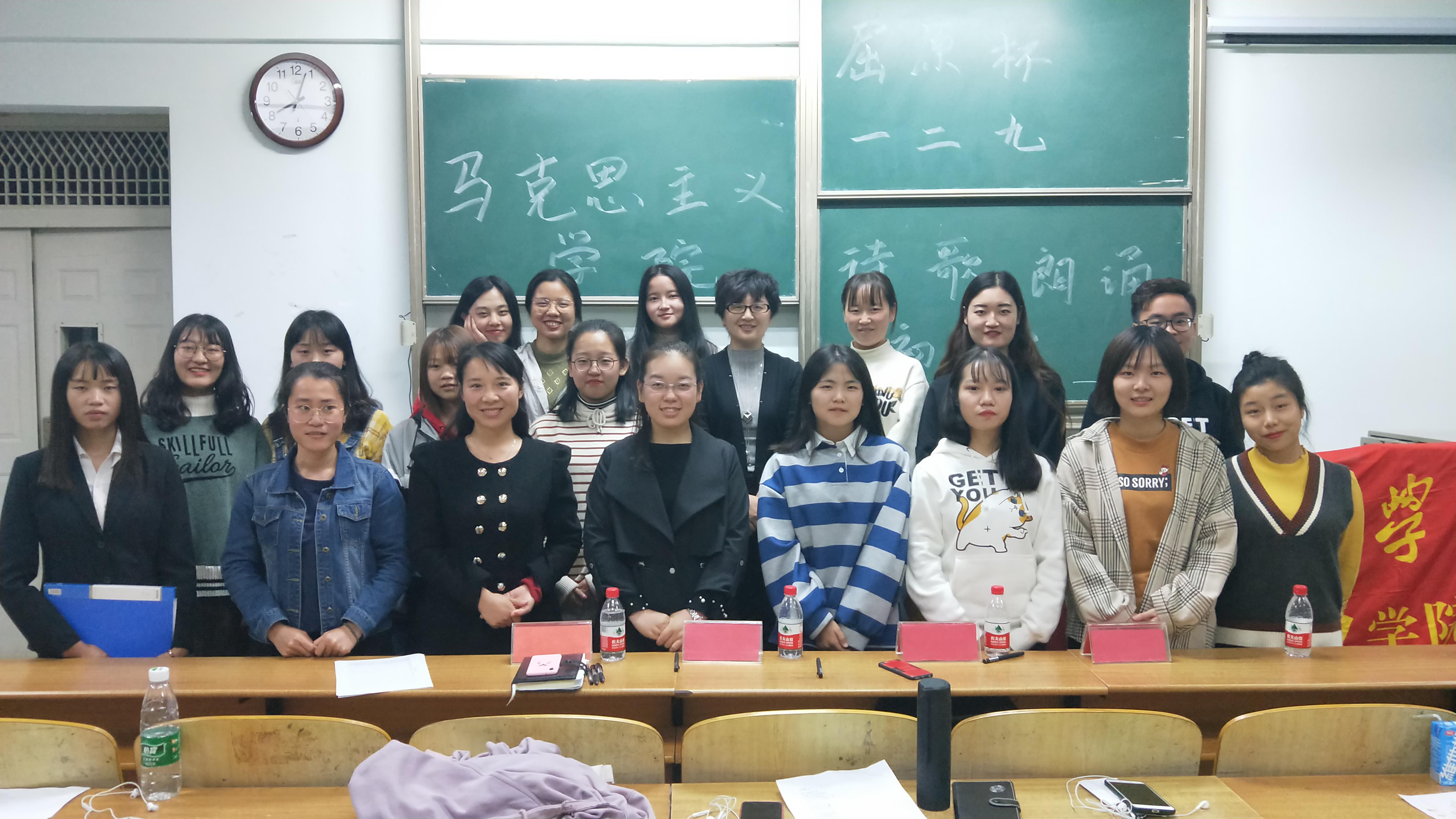 (通讯员:邱诗琪)为了纪念改革开放40周年,感受经典魅力,激励当代大学生诵读经典,展现当代大学生风采。马克思主义学院于10月15日晚七点,在13教A区105举行了“屈原杯·一二九”诗歌朗诵大赛初赛。出席本次比赛的评委有:马克思主义学院党支部副书记马小佼老师、马克思主义学院辅导员张云雾老师、马克思主义学院兼职辅导员饶静老师、马克思主义学院辅导员助理王丽琪老师、马克思主义学院学生会分管主席张洪梅、马克思主义学院学生会分管主席李天鑫、马克思主义学院“屈原杯”优秀奖获得者祝露娟。本次比赛由实践部部长陆世米主持,比赛实行十分制,三分钟计时形式,由评委老师们进行打分,选出表现比较突出的同学。