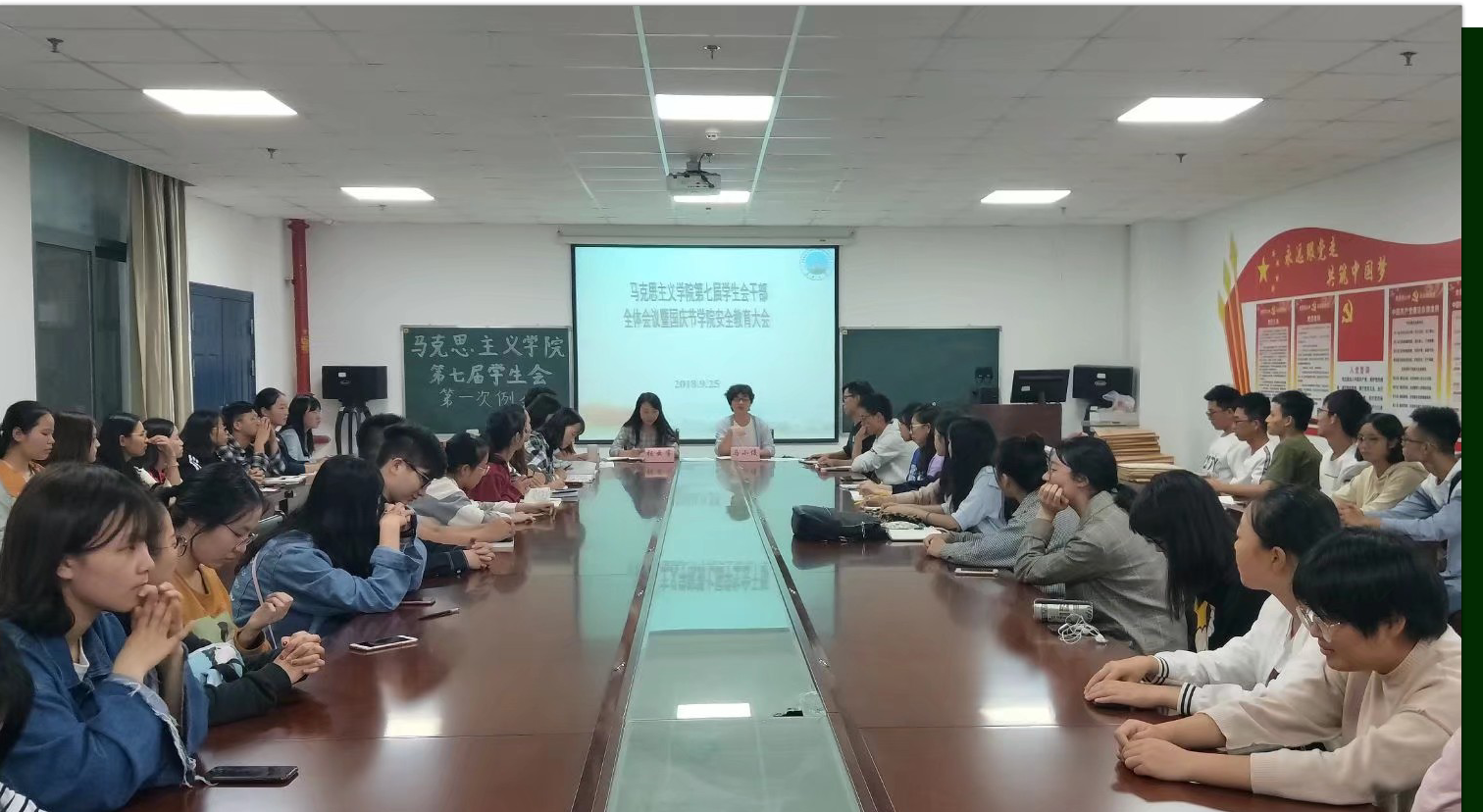 (通讯员:张也)马克思主义学院第七届学生会干部全体会议暨国庆节学院安全教育大会于十二点三十分在文科大楼1104室召开。出席本次会议的成员有:马克思主义学院党总支委副书记马小佼老师,马克思主义学院学生辅导员张云雾老师以及马克思主义学院第七届学生会全体成员和各班班长、副班长以及团支书。