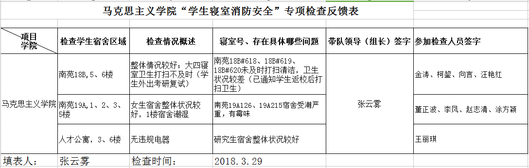 【信息公示】马克思主义学院第四周寝室卫生检查结果公示