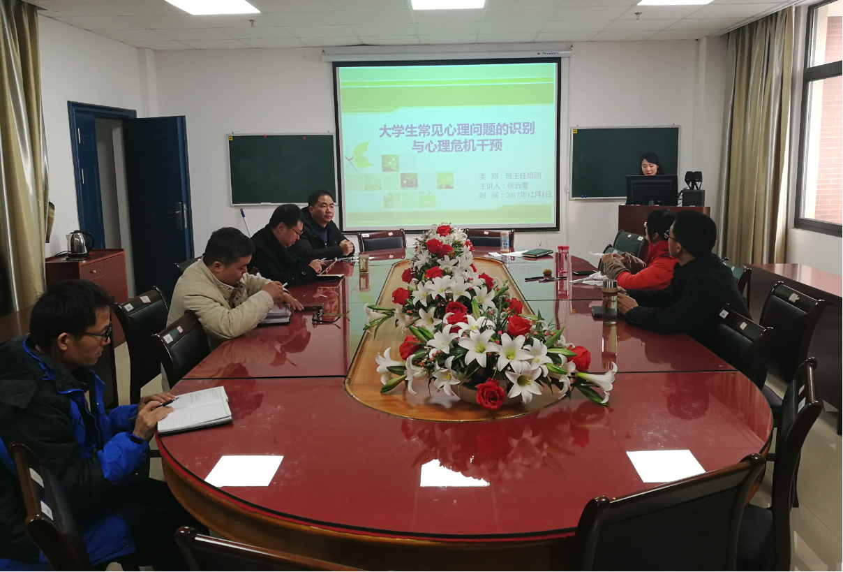 心理健康是学生安全稳定工作的重要组成部分。秋冬季节也是季节性抑郁多发时期,为有效识别学生常见的心理问题、预防危机,马克思主义学院于12月1日开展了本年度第二次班主任工作培训,由心理专干张云雾老师为班主任们讲解大学生常见的心理问题及危机干预。