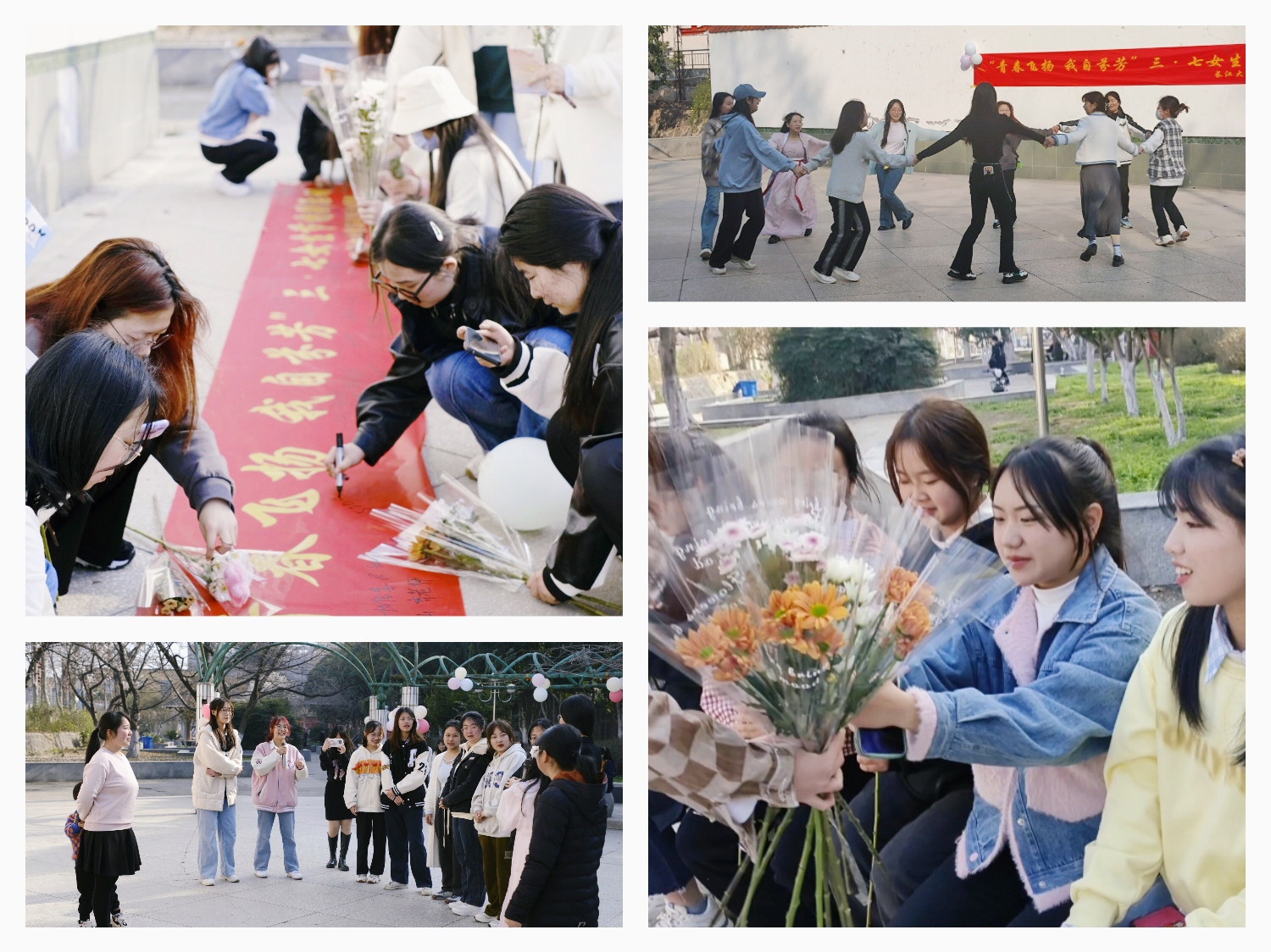 “愿我们的友谊永不褪色,愿朝气、热情与自信永恒地镌刻在我们的生命中!”伴随着主持人的祝福,学院为在场每一位女生送上了鲜花,表达祝福之情。同学们还互赠了明信片,在横幅上写下了微心愿。