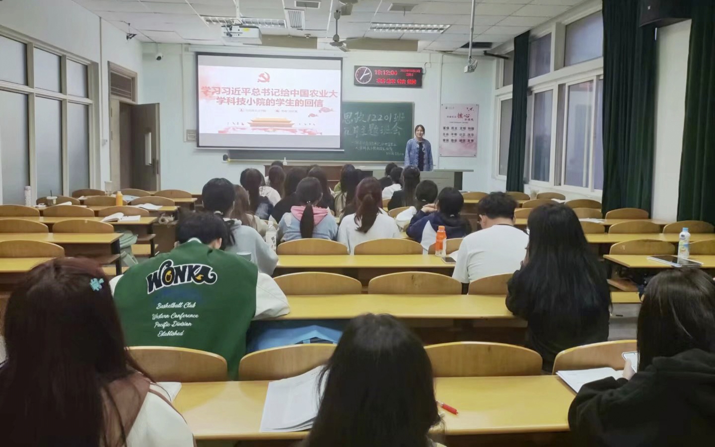 (通讯员:蒋芷溪)学习回信精神,勇担青年责任。近日,习近平总书记给中国农业大学科技小院的同学们回信,对同学们提出殷切期望,并向全国广大青年致以“五四”青年节的节日祝贺。5月5日至5月10日,马克思主义学院通过召开主题班会、学习研讨会、支部主题党日活动等方式引导同学们深入学习回信精神。大家表示,要怀抱梦想、脚踏实地,为加快农业农村现代化、全面建设社会主义现代化国家贡献青春力量。