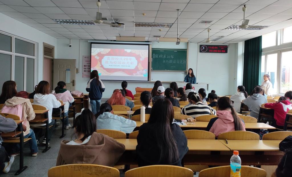 为营造爱校荣校的良好氛围,迎接即将到来的合并组建二十周年校庆活动,马克思主义学院组织本、研各班级陆续开展“喜迎校庆二十年,我为校园添光彩”主题班团会。