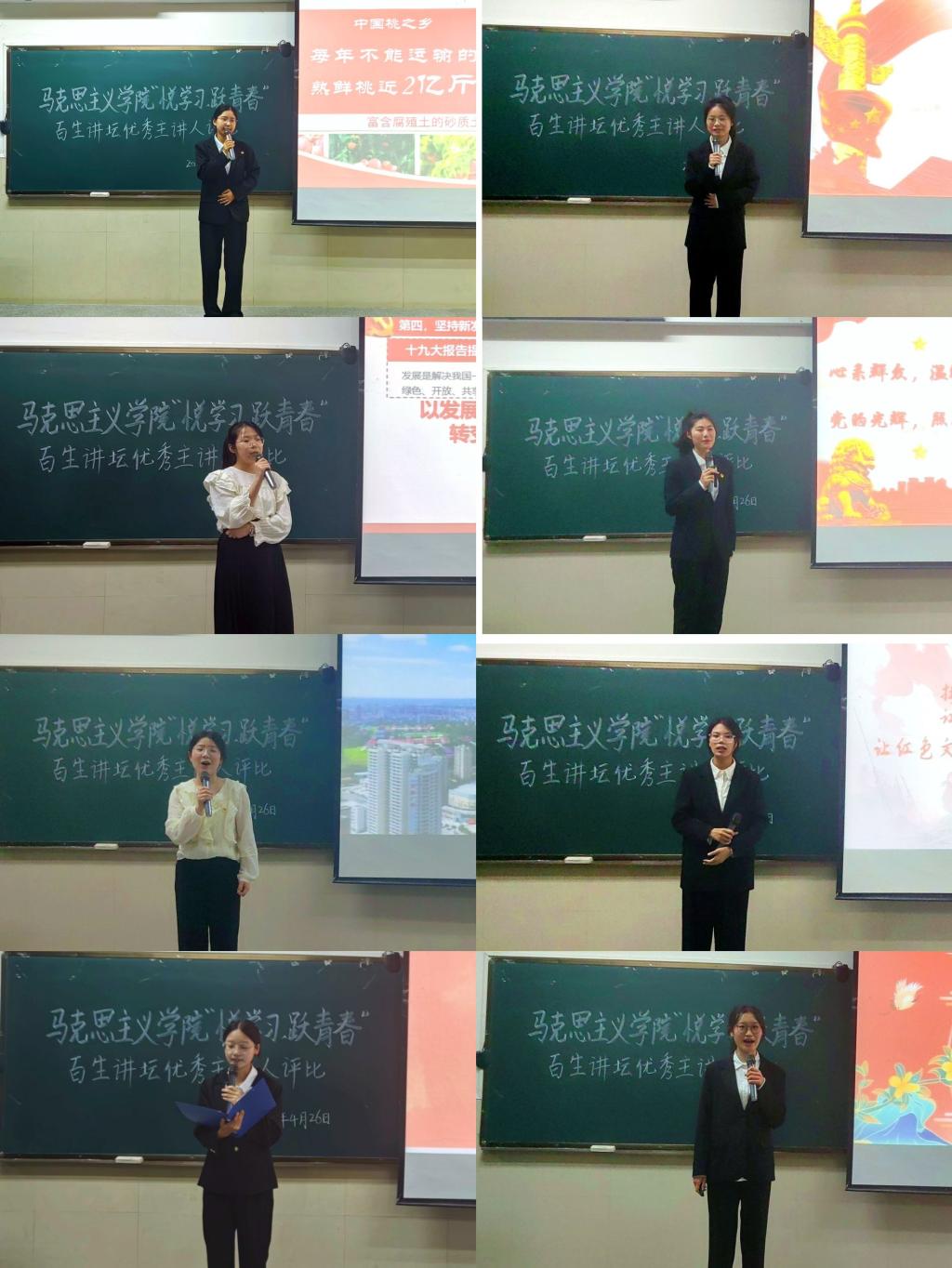 (通讯员 徐佳悦/文 汪欣瑶 万希/摄)为深入学习宣传贯彻党的二十大精神,引导全院青年学生坚定听党话、跟党走,在实现中华民族伟大复兴的时代洪流中踔厉奋发、勇毅前行,4月26日晚,马克思主义学院于东校区12教102室举办2024年“悦学习· 跃青春——百生讲坛”优秀主讲人选拔赛。学院党委副书记汤慧珍、学工办主任张云雾、青年教师郭辉、兼职辅导员何先澳及全体2023级学生参加活动。