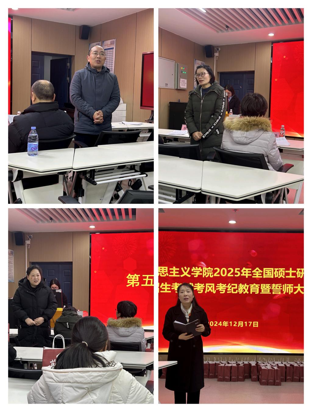 (通讯员 万希/文 徐佳悦 汪欣瑶/摄)严肃考风考纪,护航考研之路。12月17日,马克思主义学院在文科楼1008室举行了2025年全国硕士研究生招生考试考风考纪教育暨动员大会。马克思主义学院院长姜学勤、院党委书记刘小燕、副院长张莉、副院长涂江波、思政(2)12301班主任郭辉、学工办主任张云雾以及全体考研学子参与活动,兼职辅导员袁田主持。
