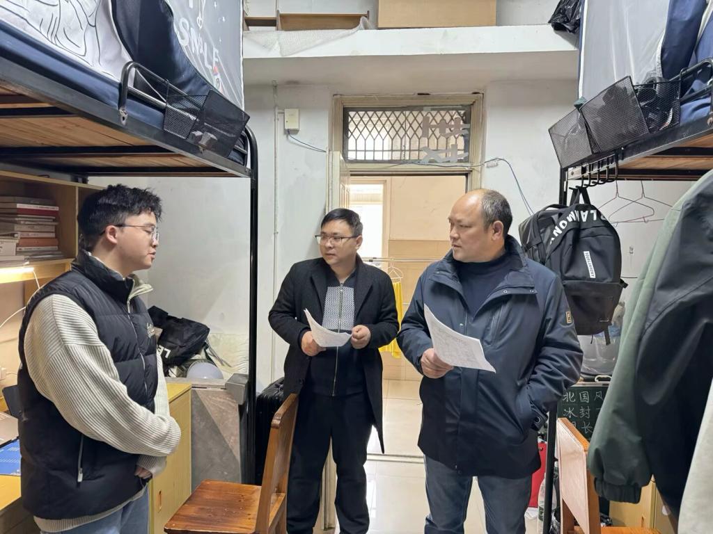 在走访过程中,姜学勤、刘小燕一行仔细检查了宿舍的卫生状况与安全设施,并提醒同学们注意保持宿舍整洁,保持良好的生活习惯。特别强调了宿舍用电安全、防火防盗等问题,叮嘱同学们要严格遵守宿舍管理规定,增强安全防范意识,营造安全、舒适、和谐的生活环境。