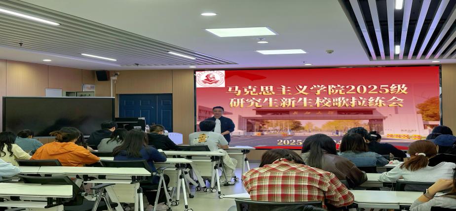 (通讯员 刘诗雨 胡小雨)9月24日下午,马克思主义学院在文科楼1008会议室成功举办2025级研究生校歌传唱活动。学院学工办主任张云雾、研究生辅导员邓鹏以及全体2025级研究生共同参与。