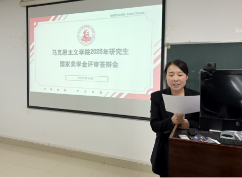 (通讯员 张妍)为评选先进、树立典型,10月30日上午,马克思主义学院于文科楼1104室举行2025年研究生国家奖学金评审答辩会。学院院长姜学勤、副院长涂江波、副院长张莉、党委副书记竺正海以及部分师生代表共同担任评委。本次答辩会由学工办主任张云雾老师主持。