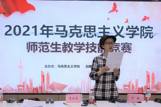 (通讯员 曹明圆)2021年马克思主义学院师范生教学技能竞赛于5月31日下午2:30在文科大楼1008思政VR实验室如期举行。马克思主义学院副院长黄晓云、党委副书记马小佼、贾廷秀教授、万敏副教授、卢军副教授、办公室徐先荣主任、思政11801班班主任汤波兰老师等7人担任此次竞赛的评委。思政11801班、11802班及思政(2)12001班全体学生参与了活动。