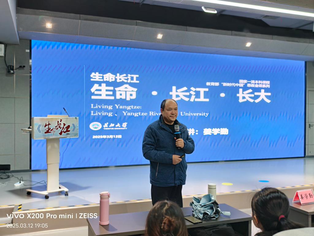 (通讯员:储康华)认识世界变局,走好复兴之路。3月12日晚上,大型思政公选课《生命长江》第十三季第一讲在16教A-313开讲,马克思主义学院院长姜学勤教授担任主讲人。围绕“大变局下的复兴之路”这一主题,姜学勤深刻剖析了六个核心问题:我们从哪里来、要到哪里去?上大学的意义是什么?怎样认识中国和世界?什么是百年未有之大变局?什么是中华民族伟大复兴的战略全局?我们能否堪当复兴大任?将小我与大我相结合,深入探讨中国青年的历史使命和未来担当。