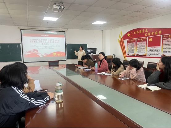 (通讯员 石秋月)为深入贯彻落实习近平新时代中国特色社会主义思想,引导广大党员坚定不移听党话,矢志不渝跟党走,增强党员的责任感与使命感。3月21日,学科教学(思政)研究生党支部在文科楼1104室开展三月主题党日活动,全体党员以及入党积极分子线上线下相结合的方式参会。