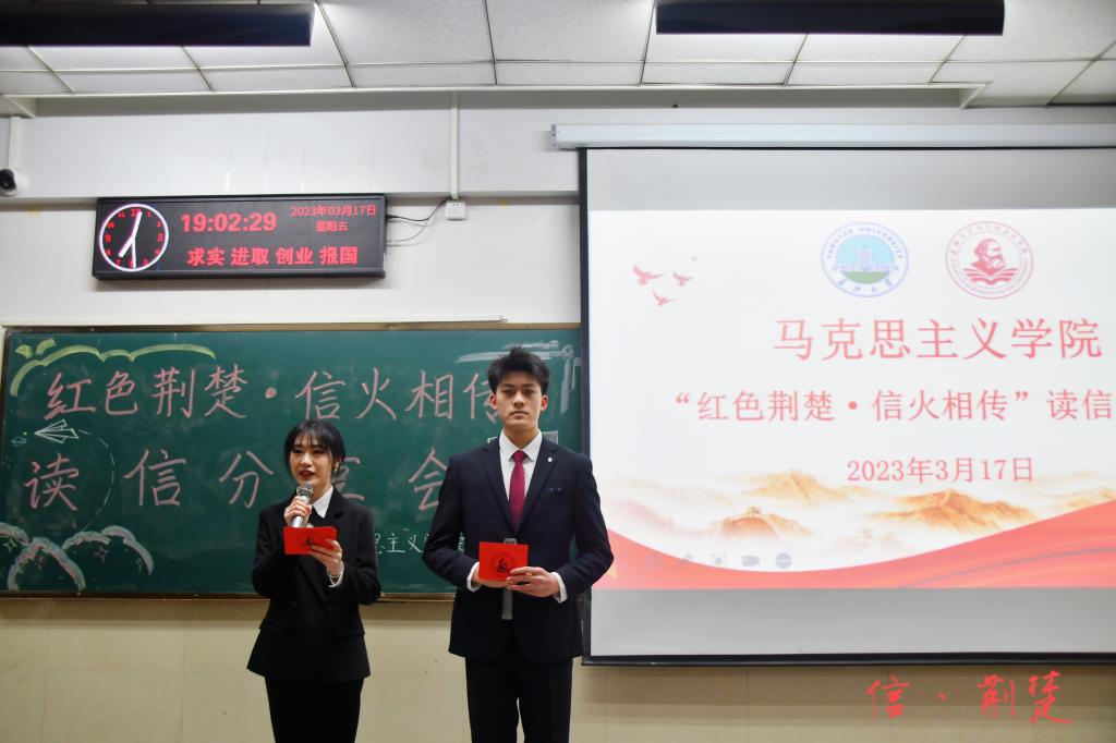 (通讯员 王悦)诵读红色书信,致敬百年峥嵘。为学习贯彻党的二十大精神,感悟信仰的力量,3月17日晚7时,马克思主义学院师生在12教203齐聚一堂,举办“红色荆楚·信火相传”读信分享会。