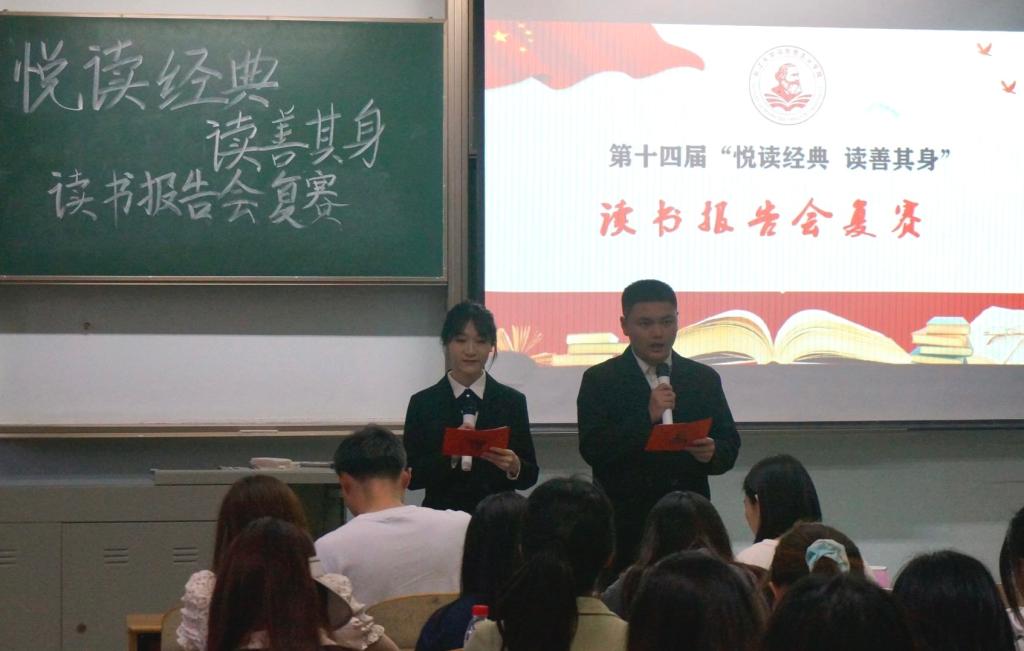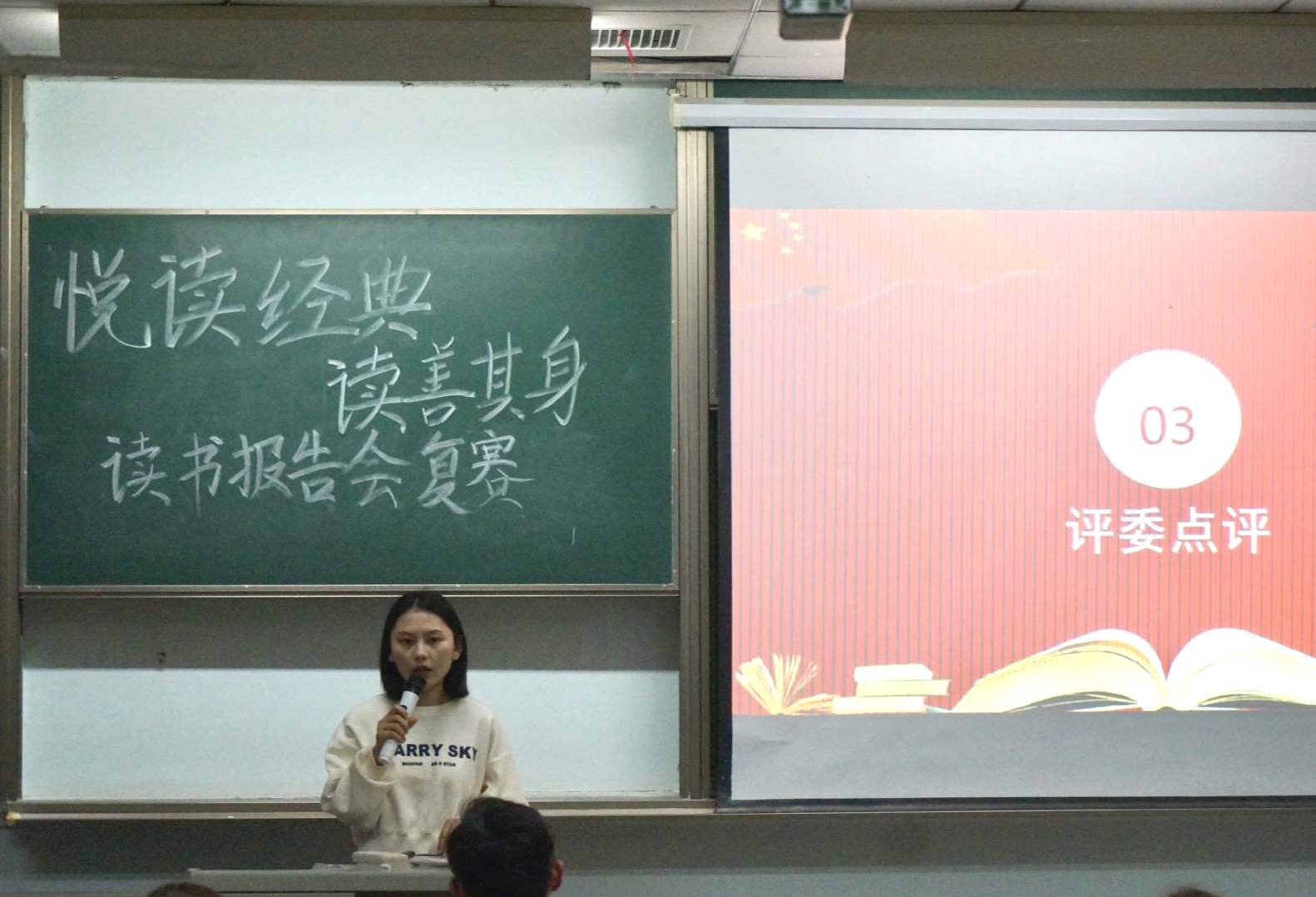 (通讯员 蒋芷溪)读万卷书,行万里路。为培养学生阅读兴趣与阅读习惯,传承红色经典,赓续红色血脉,在学校内营造浓厚的阅读氛围,马克思主义学院于4月16日晚7时在13教C119、C120两个会场举办第十二届“悦读经典·读善其身”读书报告会复赛。青年教师陈前燕、余晶晶、陈质晶,辅导员李敏参加比赛并担任评委。复赛全体选手及大一全体学生参加活动。